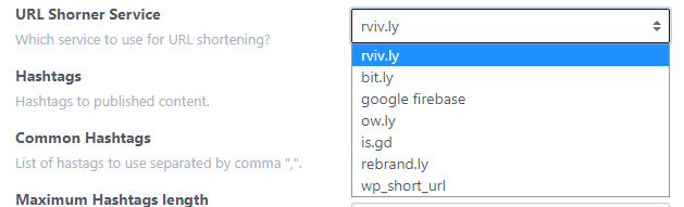 After enabling the URL shortner, you can see a new option comes up - URL Shortener Service. Select the service you want to use.