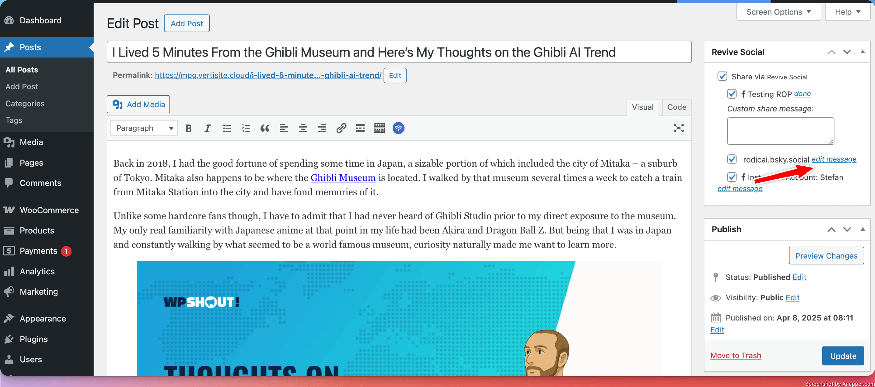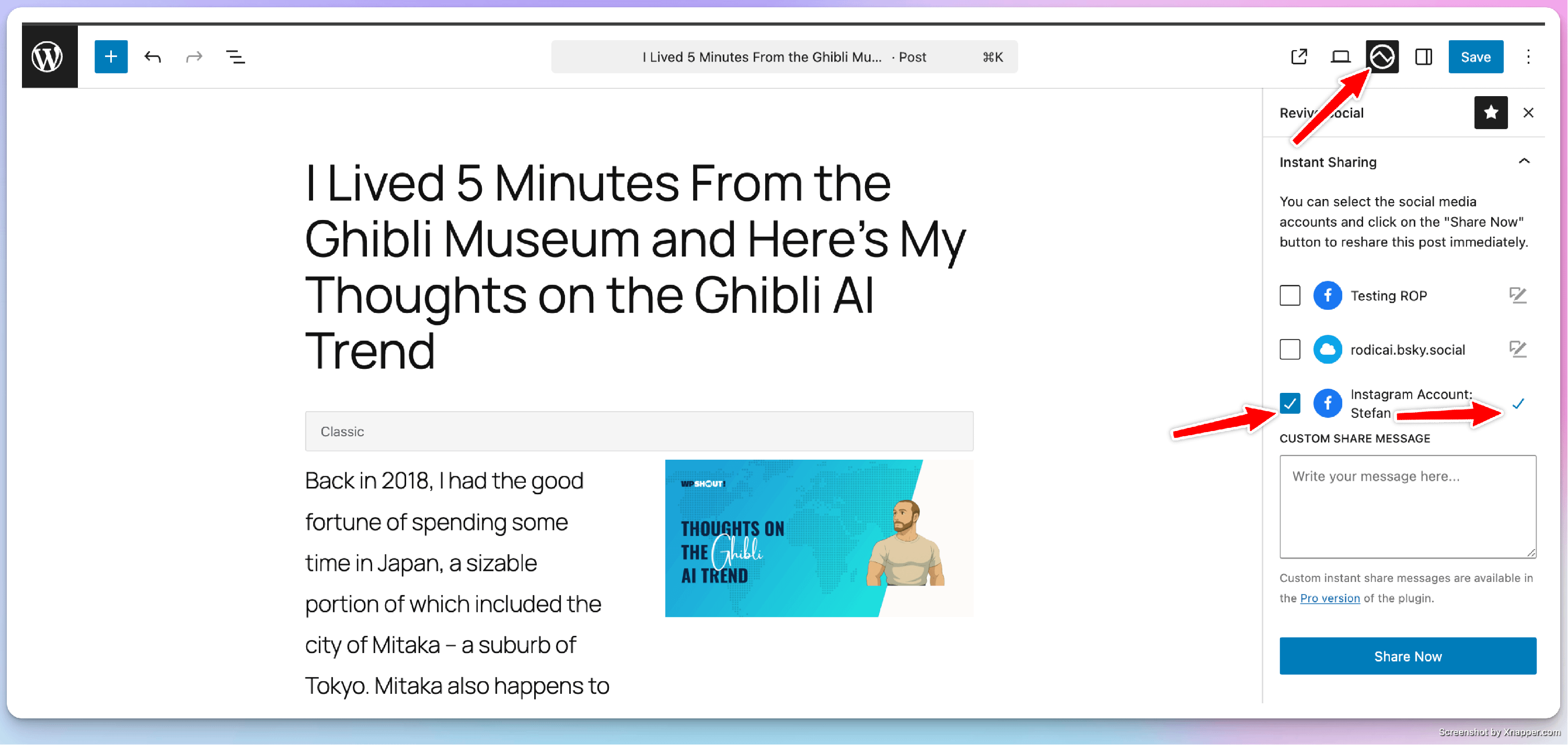 Save your changes by updating the post, and that's it! Custom share messages also support magic tags, check out the available magic tags here.