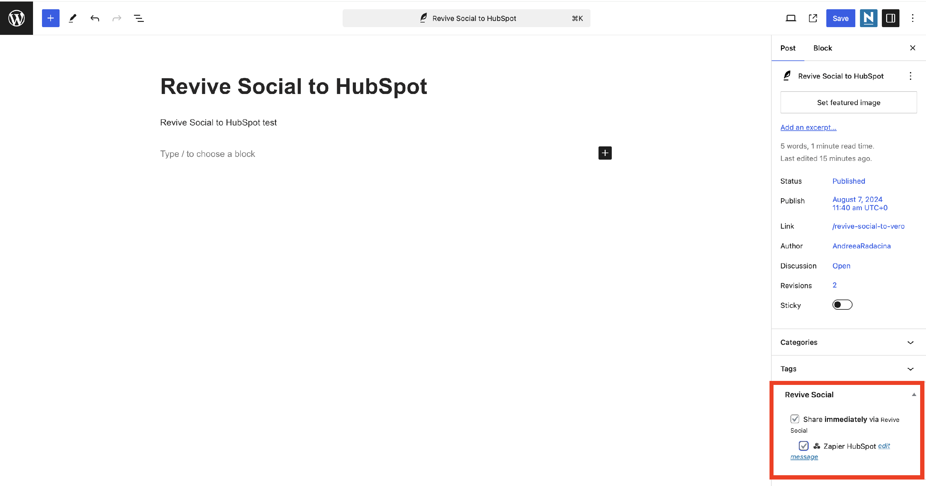 How to auto share from WordPress to HubSpot
