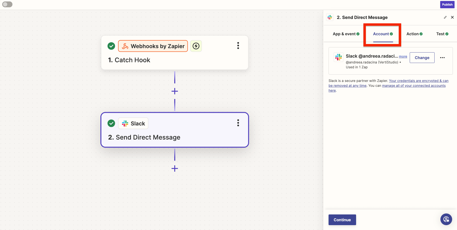 5. Connect your Slack account and click "Continue".