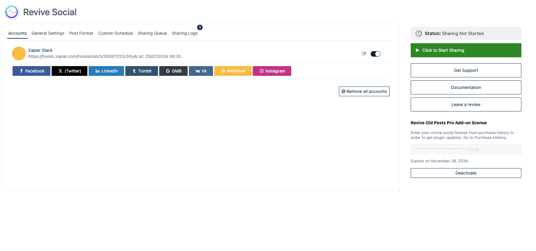 📝 Note: More details about the connection between Revive Social and Zapier can be found here.