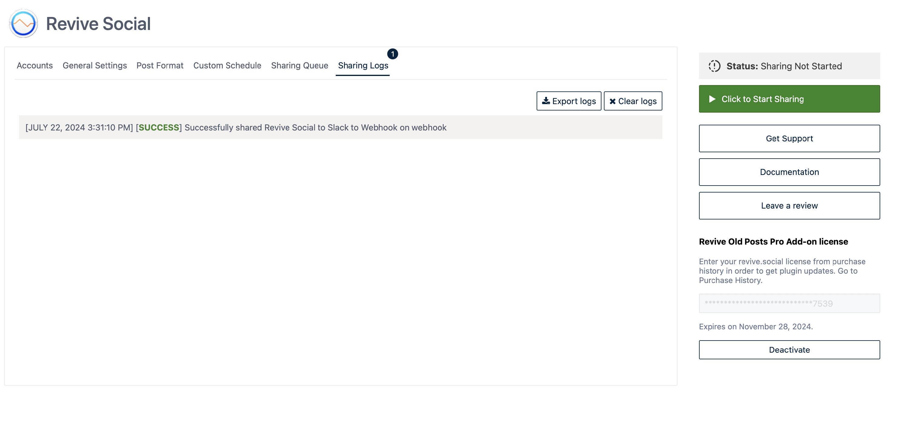 - Select the Sharing Logs tab.