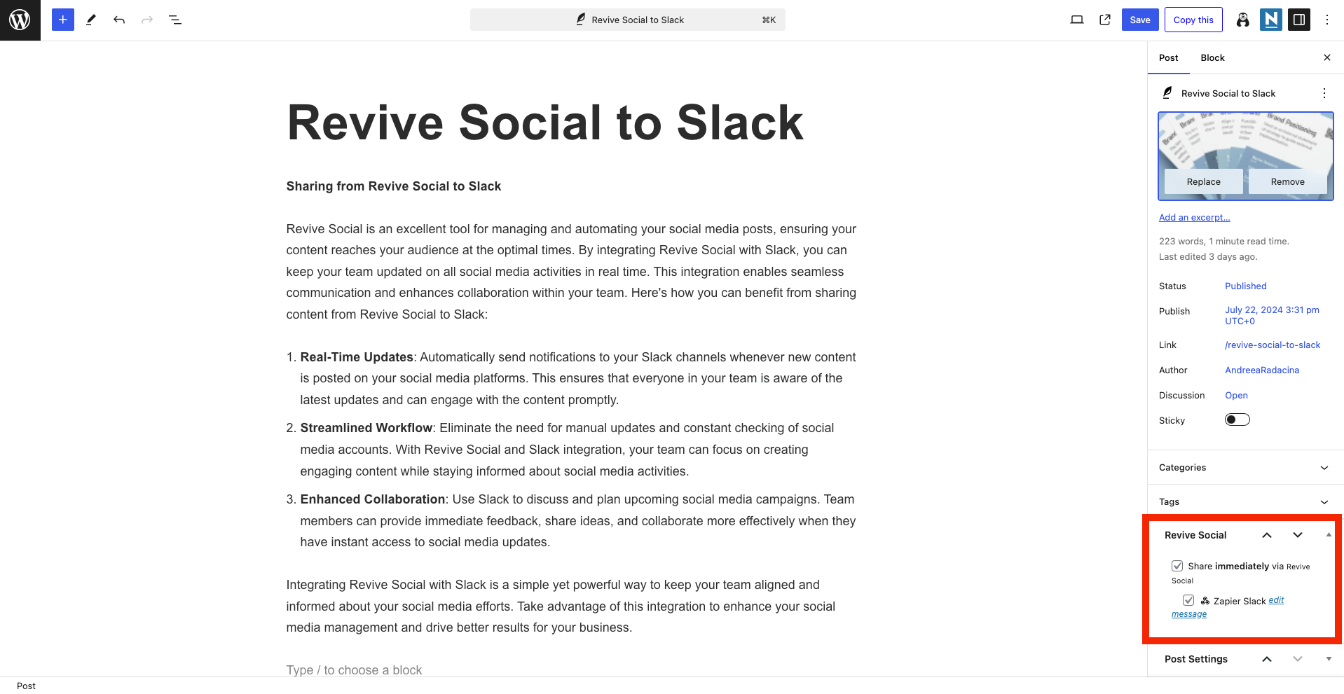 How to auto share from WordPress to Slack