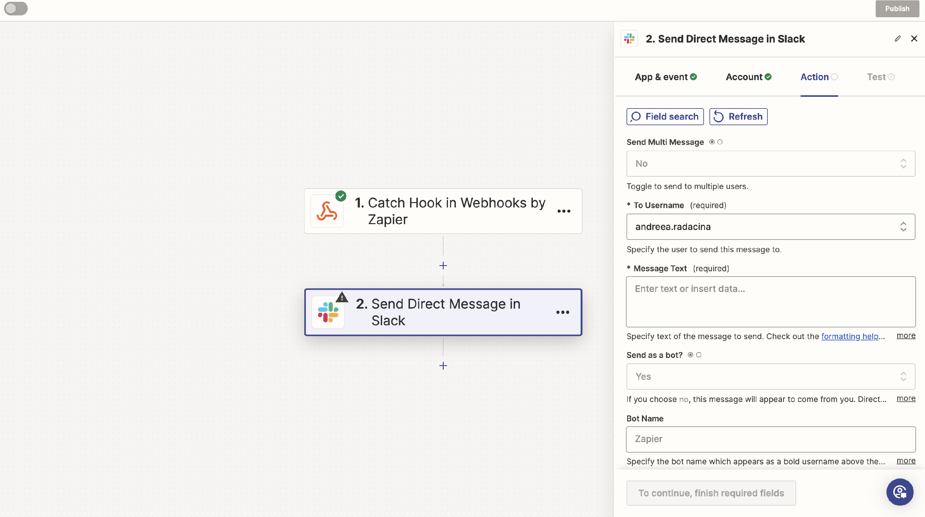 Step 7: Set Up a Slack message action