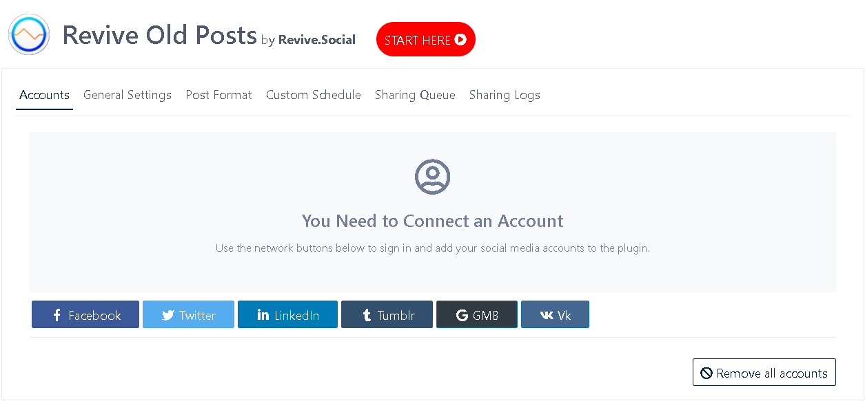 Head to the Accounts area of Revive Social and click on the LinkedIn network button: