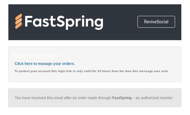 A login link will be sent to your inbox with a link to "manage your orders". Click the link and you will be brought to the Fast Spring dashboard.