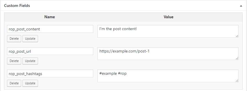 Update/Publish your post and that's it for creating custom fields!