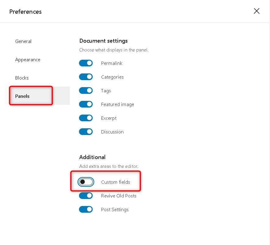 If you are using a Gutenberg editor, you can enable the custom fields by clicking the three dots at the top right.