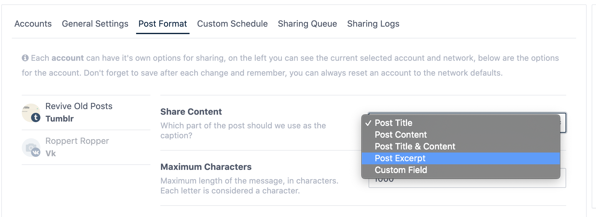 How to use excerpt field for shares in Revive Social