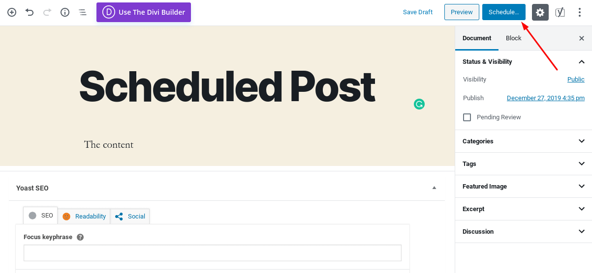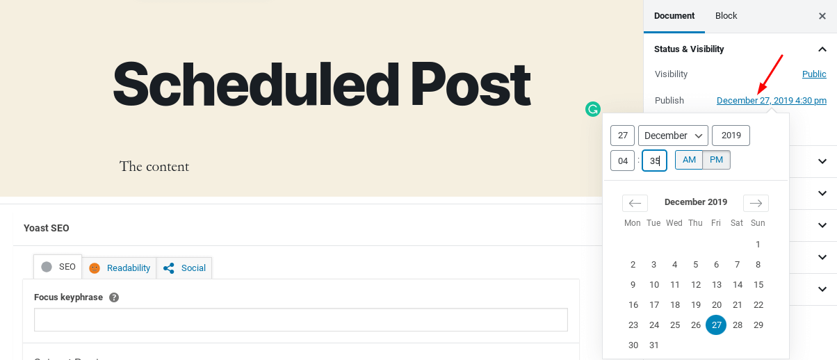 To see the feature in action create a post in one of the post types above and set it to schedule at a future date/time: