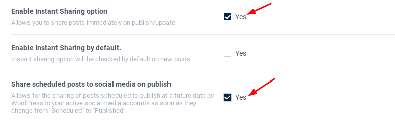 To turn on the option go to General Settings on the Revive Social dashboard, and scroll down to Enable Instant Sharing option