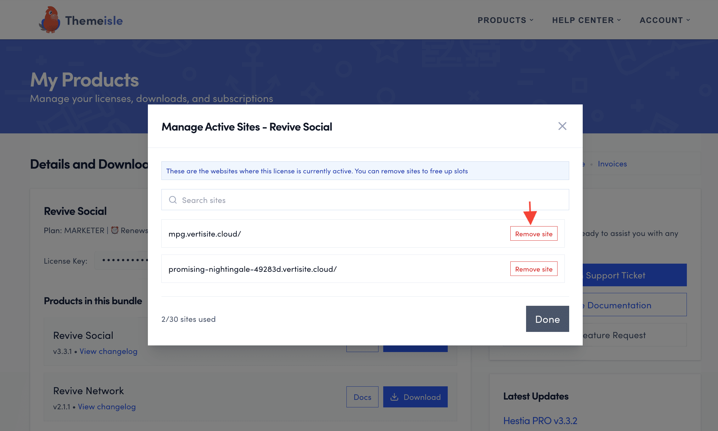 - Remove the websites which don't need your license key anymore